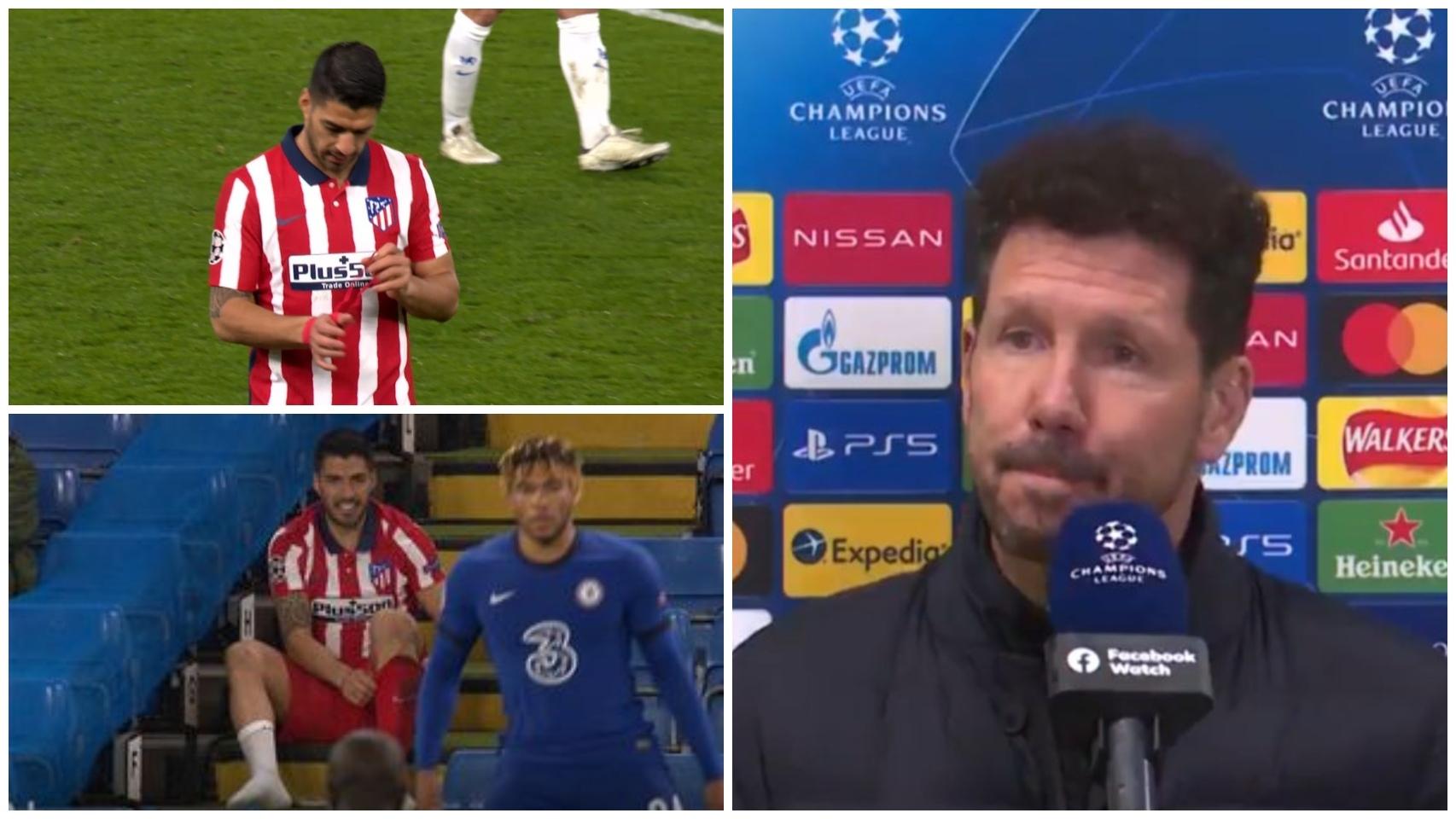 A Luis Suárez no le gustó ser sustituido a la hora de partido cuando el Atleti iba 1-0 por debajo en el marcador. Su enfado era evidente en su rostro y en su brusca manera de quitarse y lanzar las vendas de sus muñecas y tobillos. A Simeone no le salió bien la jugada, pero tras el partido contestó al uruguayo.