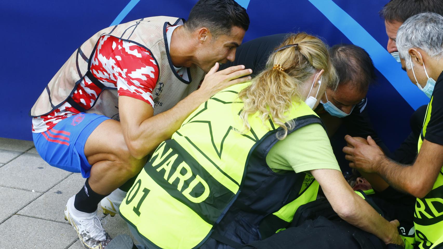 La vigilante cayó al suelo aturdido y con evidentes gestos de dolor. Cristiano, que lo vio todo, fue rápidamente a preocuparse por el estado de la mujer. Esta, tras ser atendida en el suelo, pareció recuperarse.
