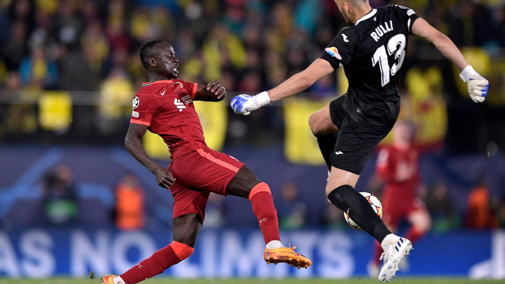Thiago controla ante la presión de los jugadores del Villarreal.
