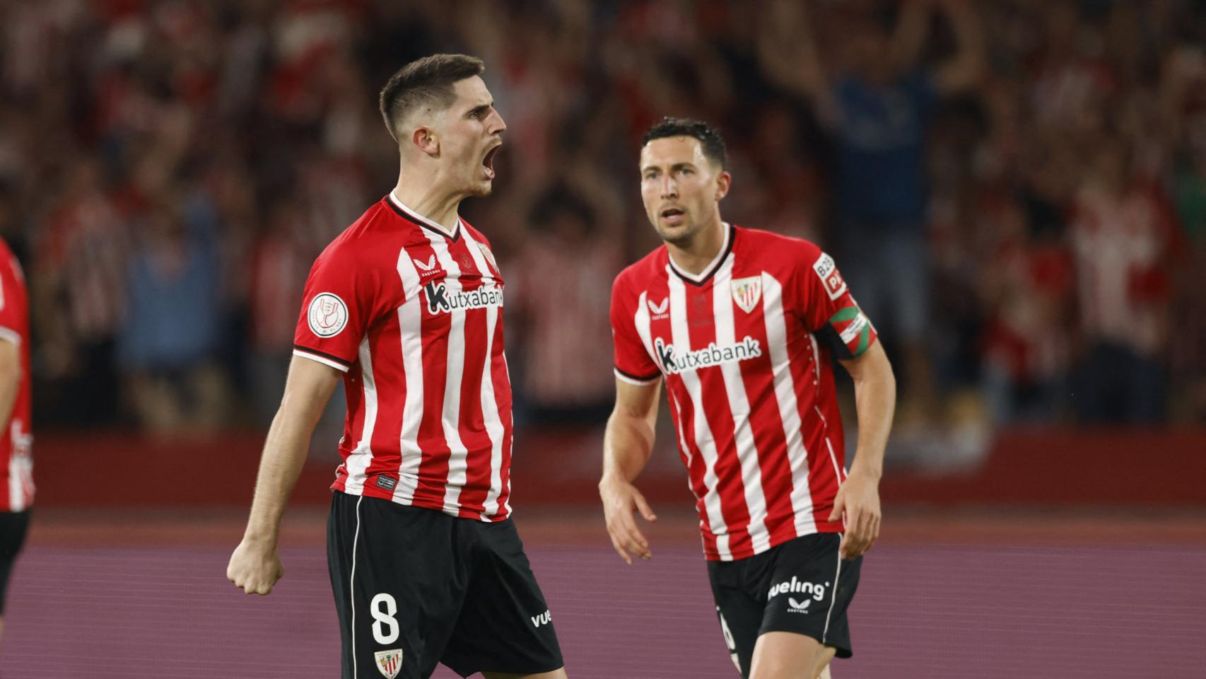 Oihan Sancet celebra el gol del empate en la final de la Copa del Rey.