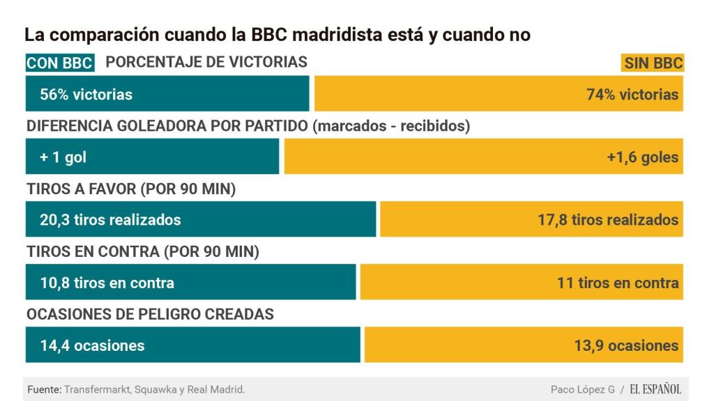 Gareth Bale es un jugador fantástico que además equilibra a la perfección a Cristiano y Benzema pero, si no está al mejor nivel, el banquillo da garantías para no forzar. De hecho, la BBC madridista ha estado casi inédita este año coincidiendo en 19 partidos en todo el curso. Por eso vemos como se ha acostumbrado el equipo a jugar sin la BBC: