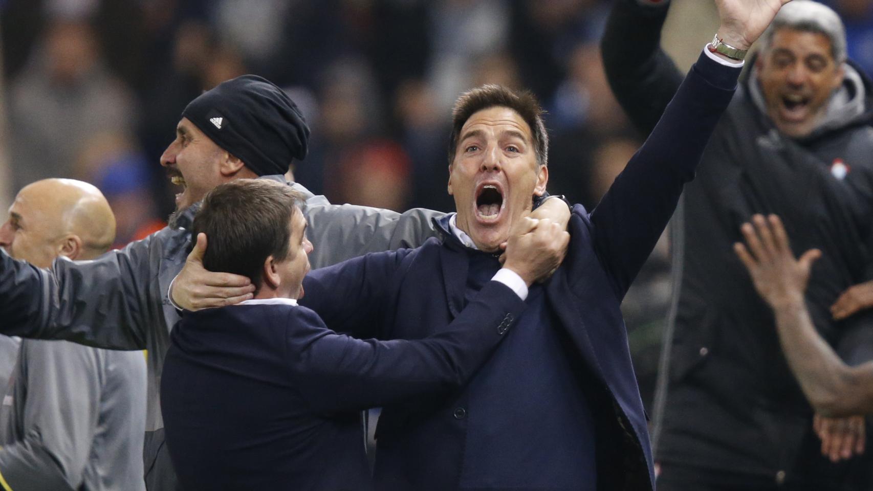 Berizzo y su cuerpo técnico celebran la clasificación / Reuters