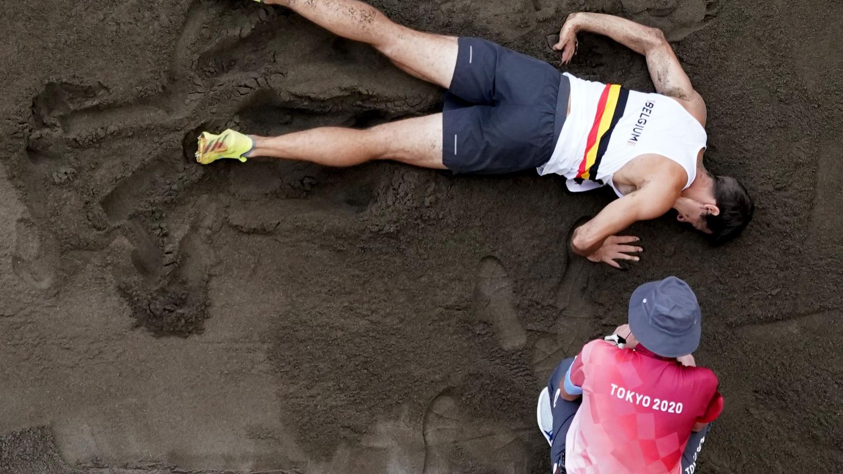 Thomas Van der Plaetsen, tendido sobre la tierra tras su caída
