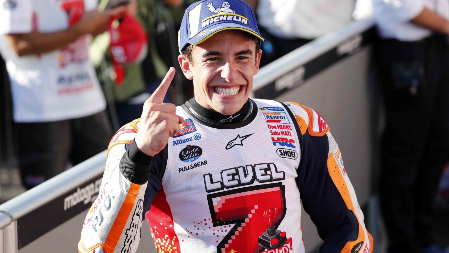 Marc Márquez celebra la victoria en el GP de Japón y su quinto título de MotoGP