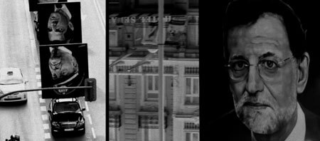 Los encargados de este proyecto, que presta imagen al rechazo de las mayorías frente a una crisis que en España además de económica es, sobre todo, institucional, son los artistas Jorge Galindo (Madrid, 1965) y Santiago Sierra (Madrid, 1966), que llevaban años hablando de colaborar juntos, y la coleccionista y galerista Helga de Alvear, que ha asumido los gastos de un proyecto de un año de duración, un rodaje con quince cámaras y, en conjunto, un equipo de casi medio centenar de profesionales. Los tres, premiados y respetados aquí e internacionalmente, unidos por el compromiso. Nadie puede dudar del patriotismo de Helga de Alvear, excepcional embajadora de España en la escena internacional y que ha donado al Estado español una de las mejores colecciones privadas de arte contemporáneo a través de su Fundación en Cáceres. Ni de la honestidad de Sierra, que dejó fuera de juego tanto a la administración de Aznar con su polémica intervención sobre la política de emigración en el pabellón de España en la Bienal de Venecia, como a la de Zapatero, al renunciar al Premio Nacional de Artes Plásticas; su gigantesco NO, que paseó por las ferias internacionales, es el que hoy portan miles de manifestantes. Para Galindo, cuyas imágenes venían siendo cada vez más corrosivas, supone también el colofón de una década de pintura figurativa, ante su inminente vuelta a la abstracción que coincide con su traslado, desde la galería Soledad Lorenzo.