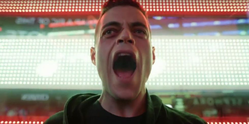 Si tuviera la obligación de resumir la trama de esta segunda entrega, aparte de morir de aburrimiento tampoco sería capaz de ponerlo en orden y extraer algún claro sentido de todo ello. El factor sorpresa con el que terminaba la primera temporada, revelando como en El club de la lucha que la esquizofrenia dramatúrgica respondía a la esquizofrenia del personaje (quien imagina a su padre, su otro yo, como causante de sus demonios y pulsiones ‘hacktivistas’), quiere convertirse en el sello de la serie. Esto da lugar a que en el ecuador de la temporada tengamos que volver a ver lo que hemos visto con otros ojos, pues nos es revelada una información básica del estado de Elliot: que no vive con su madre ni se ha aislado del mundo conscientemente, sino que está encarcelado. Al final de la temporada, tendremos de nuevo que enfocar la lente, pues otras informaciones cruciales nos son reveladas en la maraña de saltos temporales (las grandes revelaciones siempre son en flashback), deformaciones de la realidad y engranajes perceptivos de una trama alimentada de múltiples subtramas que se expanden al Ejército Oscuro, al imperio financiero chino y a una infancia maltratada.