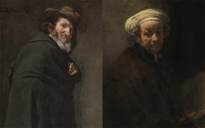 Velázquez: 'Menipo' (1599-1660) y, a la derecha, Rembrandt: 'Autorretrato como el apóstol san Pablo' (1661)