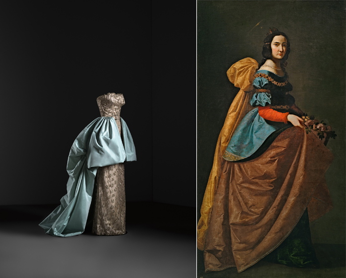 Vestido de Balenciaga, 1963. Foto: Jon Cazenave / Zurbarán: 'Santa Isabel de Portugal', H. 1635