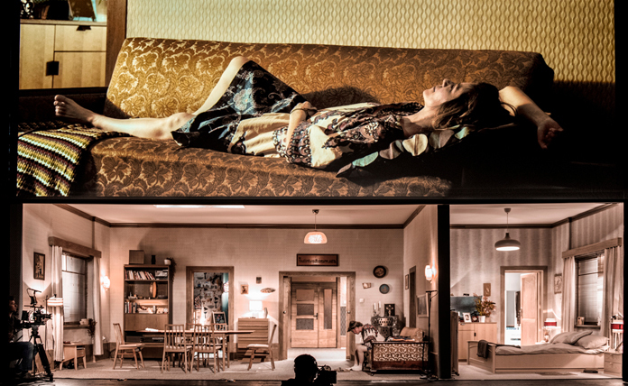 Kleczewska utiliza un recurso fílmico para poder escudriñar al detalle las reacciones de los personajes. Mediante cámaras registra la acción y proyecta, en una pantalla grande sobre la escena, primeros planos de sus caras. “Me permite además aproximarme a la historia desde diversos ángulos simultáneamente”, añade. Es llamativa también la ‘banda sonora’. Ópera italiana para acompañar a Mabel en su progresivo desquiciamiento. Suenan Donizetti y Catalani, elegidos por el compositor polaco Cezary Duchnowski, colaborador habitual de la regista. “Él lo tuvo muy claro nada más ver la película porque los dos también abordaron la ‘enajenación’ femenina”.
