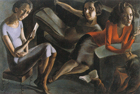 Poco después, como conclusión de sus pesquisas realistas -compartida entonces con los pintores Mariano de Cossío, Salvador Dalí, Cristóbal Hall, Timoteo Pérez Rubio y Alfonso Ponce de León-, pinta la Tertulia, auténtico icono en el que las mujeres nos seguimos reconociendo hoy (colgado en la colección permanente del Museo Reina Sofía). La tela congregó una peregrinación de intelectuales que admirarían su trabajo: Ramón Gómez de la Serna, Federico García Lorca, Jorge Guillén... En un ambiente de cerrada complicidad, Ángeles Santos se retrata con sus amigas: "éramos modernas".