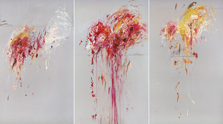 Tres de las pinturas de Nueve discursos sobre Cómodo, 1963, de Cy Twombly