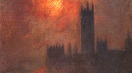Londres, le Parlament. Troueé de soleil dans le brouillard, 1904. Claude Monet