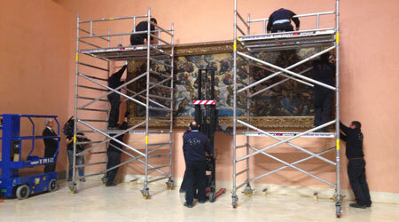Otro de los momento de la colocación de El Paraíso de Tintoretto