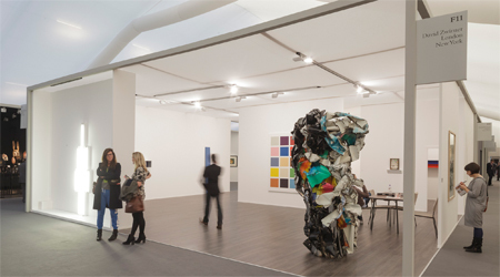 Con esta excentricidad contrastan las grandes galerías de arte contemporáneo neoyorquinas, como Gagosian, Hauser&Wirth o David Zwirner. Las tres presentan stands espléndidos que bien podrían ser pequeñas salas de museo, muy bien iluminadas y espaciosas y con obras de todos los grandes artistas americanos del siglo XX. Merece la pena detenerse en el stand de Dickinson, que en su primera participación en Frieze Masters, presenta paisajes de artistas como Monet, Constable o Claude Lorraine junto a los que cuelgan interpretaciones que de ellos ha hecho el artista brasileño Vik Muniz. Tampoco dejen de ver el stand de Peter Freeman, de Nueva York, con grabados de Corot en diálogo con estupendos dibujos de Lee Lozano y no menos sugerentes collages de Ellsworth Kelly.