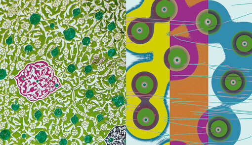 En otras obras, como en las impresiones digitales de Estambul, fragmentos de fotografías de techos, mosaicos, alfombras u otros objetos combinan, en cortes de franjas verticales, con las realizaciones digitales de su mano, aunando líneas de fuerza, y alternando filigrana y color. Aún más, contradicciones formales elementales, como la contraposición fondo-forma, o sólido-hueco, la vibración de la línea o su sostenimiento estático alcanzan formulaciones especialmente vibrantes en las cajas de luz y en la gran composición digital sobre lona.El montaje en el Centro de Arte de Alcobendas es otro de los puntos fuertes de la exposición, donde volvemos a constatar la experiencia de Rufo Criado. Personalmente, el más satisfactorio sobresalto me vino al contemplar cuatro acrílicos sobre lienzo especialmente sobrios y casi ortogonales, los Ornamentales 11, 12, 13 y 14.