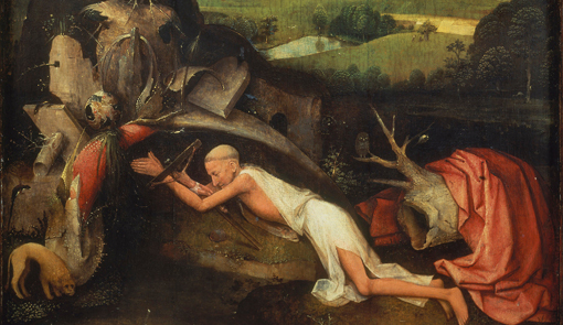 ¿Cómo dar vida y convertir en algo atractivo un discurso moralizante? ¿Cómo hacer de una moralina algo atractivo? El Bosco lo tuvo claro, a través de lo curioso y lo superfluo para el predicador subido al púlpito, a través de la risa y la comedia, lejos de la seriedad ominosa del Jorge Burgos de El nombre de la rosa del medievalista y intratenitore Umberto Eco, a través del absurdo de la vida humana, del mundo convertido una y otra vez en un mundo al revés satirizable. Santos protectores como San Cristóbal o San Antonio de Padua entre sus millares de tentaciones y San Juan Bautista, nos ofrecen modelos en medio del disparate y los seres más absurdos que se puedan imaginar para nuestro deleite, o como San Martín de Tours, al que también se le podía hacer irrisión al presentarlo huyendo de la ciudad por barco, asediado por una turbamulta de exigentes y excesivos pobres pedigüeños, dispuestos no sólo a compartir su capa sino a convertirlo en reliquias. Eran santos hombres que podían, también, recibir la crítica como una postura innovadora en lo moral, por el exceso de pobres faltos de carnet de pobre y de exorbitada demanda de caridad.