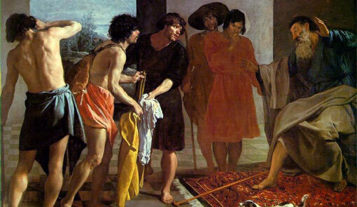 La muestra ha sido dividida en cuatro secciones que se corresponden con las diferentes etapas y escuelas italianas. En De Bolonia a Roma, la primera de ellas, destaca La Túnica de José de Velázquez que fue pintada, seguramente, a su regreso a Madrid después de su primera travesía por Roma. Aquella experiencia marcó su pintura y se abrió a una nueva manera de pintar que se deduce en esta obra a la que la exposición presta especial atención.