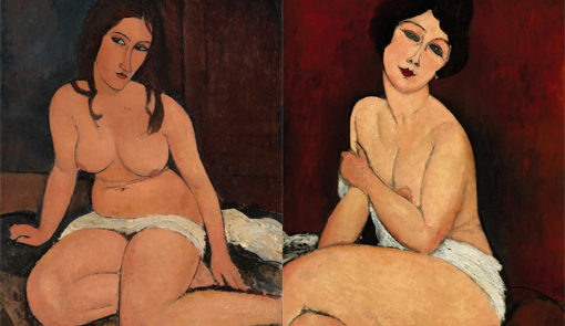 "Los desnudos de Modigliani son, quizá, sus obras más conocidas y provocadoras. En sus lienzos el artista hizo uso de nuevas e impactantes composiciones que modernizaron la pintura de desnudos", afirman Nancy Ireson, Simonetta Fraquelli y Emma Lewis, comisarias de la muestra. De hecho, sus representaciones fueron tan explícitas y "crearon tanta controversia que conllevó a la censura de la única exposición individual que hizo en vida en la galería de Berthe Weil en 1917". Las obras fueron calificadas de indecentes y un comisario de policía rechazó la representación de vello púbico causando que la galería tuviera que descolgar las piezas. "Esto hizo que la exposición decayera pero, como dijo el periodista F. Carco en el periódico L'Eventail, esta versión de los hechos fue una exageración". La exposición se mantuvo en pie y se consiguieron varios compradores.