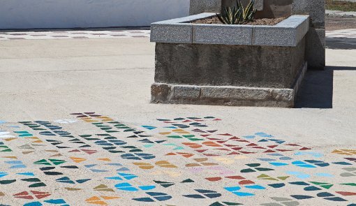 En Badajoz, una provincia en la que cuesta dar con propuestas de arte contemporáneo, se celebra este verano Supertrama, un programa de arte público impulsado por la arquitecta Marina Fernández Ramos con el apoyo de la Junta de Extremadura. Es de pequeña escala y de carácter itinerante (por municipios de menos de 5.000 habitantes). En el primer programa, el año pasado en Valverde de la Vera (Cáceres), contaron entre los miembros del jurado con el hoy ministro Guirao y con la participación, entre los artistas, de Antonio Ballester Moreno. En esta nueva entrega el escenario es Vivares, un pueblo de 700 habitantes cerca de Mérida. En una de sus plazas, de solado de cemento, Alberto Crespo (Segovia, 1972) ha diseñado junto a Susana Soria un código de formas y colores con la genealogía de todos los habitantes desde la creación del pueblo en 1966. Lucía Loren (Madrid, 1973), artista y activista con un trabajo vinculado a la naturaleza, ha trabajado con niños y mayores en una instalación sobre cómo la transformación del ecosistema afecta a ciertas aves, sustitutas naturales de los pesticidas. Y el Estudio Palmeral ha hecho una opereta popular recogiendo los temas de interés local para la que ha diseñado un hinchable que funciona como un actor más.