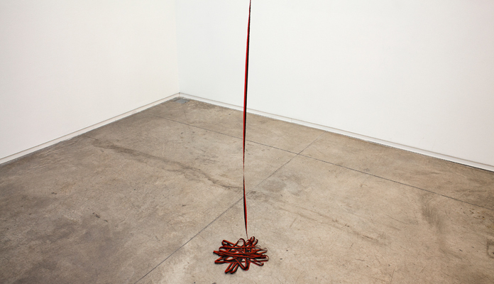 Dispuesto a dar una nueva vida a materiales y objetos descartados en su taller, Jaime Pitarch (Barcelona, 1963) invita en Àngels Barcelona a reflexionar sobre las posibilidades de dejar de ser. Está integrada por siete esculturas hechas con objetos tan variados como un perchero, unas muletas, un clavo de olor mutado en clavo metálico o varillas que provocan una sensación de inestabilidad ineludible. La exposición se equilibra a la perfección con Los olvidados, una pieza de gran belleza hecha a partir de una cinta de máquina de escribir sobre la que el tiempo ha ido imprimiendo documentos, cartas, nombres y declaraciones, un sin número de palabras y frases que escritas sobre la superficie de su banda bicolor relatan el recuerdo de un pasado olvidado. Lo devuelve a la vida un motor que con ayuda del azar activa los dibujos de caprichosas formas sobre el suelo de la galería.