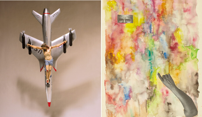 Un momento decisivo en su proceso creativo tiene lugar en 1965, cuando produce un collage escultórico en el que sobre la reproducción de un avión militar estadounidense, cargado con bombas, sitúa la figura de un Cristo crucificado. La obra es la antes mencionada La civilización occidental y cristiana, y su idea le vino por el impacto e intenso rechazo que le produjeron los bombardeos estadounidenses en Vietnam. Lo que así se inicia es un proceso crítico que asocia los sistemas modernos de dominación con los planteamientos de la religión cristiana.
