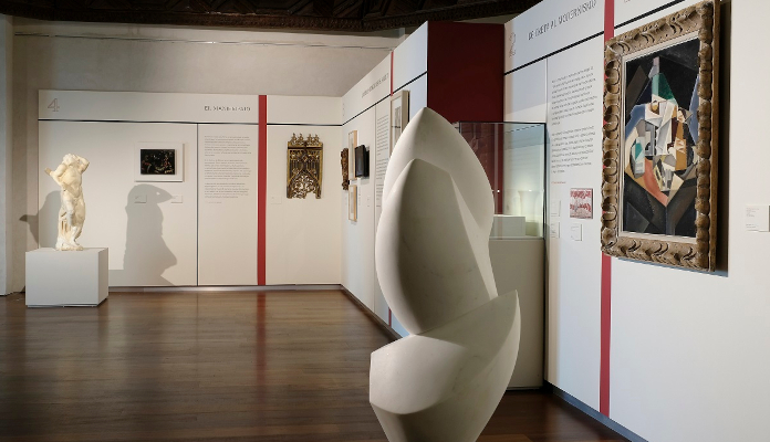 Si bien la primera parte de la muestra, Archipiélago Caturla, nos adentra en la biografía de la historiadora del arte, la segunda, La historia en zigzag, es una traslación a la pantalla de las ideas que salpican el libro. La muestra trata de materializar algunas de las ideas desarrolladas por Caturla en su ensayo y se completa con una exposición física en el Rincón rojo, espacio expositivo situado en el corazón del Colegio de San Gregorio, donde se reúnen algunas obras que ilustran el juego de afinidades entre inestabilidad formal y malestar histórico. Dividida en las mismas secciones que establece el libo, esta temporal que se podrá ver hasta el 27 de junio, se nutre de obras de artistas como Jean Arp, Maria Blanchard, René Lalique o Juan de Juni. “Es una muestra -concluye Bolaños- que cuelga el libro en las paredes y hace que algunas piezas cobren dimensión, como si las ilustraciones se hubieran convertido en reales”.