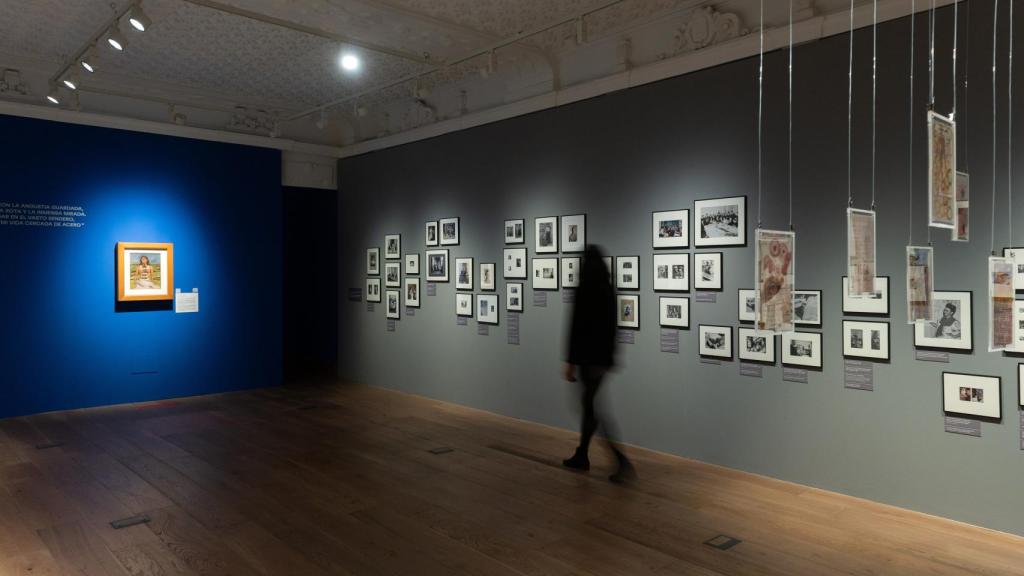 Vista del montaje con fotografías de Frida Kahlo en Casa de México