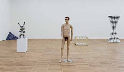Obras de Félix González-Torres, Jeff Koons, Charles Ray y Katharina Fritsch en la exposición Sculpture on the Move 1946-2016 en Kunstmuseum Basel. Foto: Gina Folly