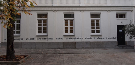 Espectro político, 2003. Instalación de letras de vinilo en el exterior de la galería Elba Benítez, Madrid