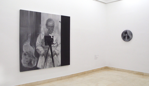 La exposición se titula Ejecución en Efigie (lean las palabras en toda su polisemia, porque es deliberada) y convoca a una caterva de fantasmas que posan, que posaron, frente al lienzo o la cámara. Están Unamuno, Primo de Rivera, Walter Benjamin, la fotógrafa espiritista Ada Emma Deane... junto a un paisaje carbonizado inspirado en Pedro Páramo, "sobre las brasas de la tierra, en la mera boca del infierno". Chema López otorga una gran importancia al montaje de las obras y en esta ocasión nos insta a contemplarlas secuencialmente al numerarlas sobre la pared. En realidad, ese artificio no oculta que las piezas no forman parte de una misma serie sino que corresponden a cuatro o cinco líneas argumentales diversas, aunque todas muy recientes (salvo el enorme e impresionante paisaje, que es de 2006) y relacionadas casi siempre entre sí. Seguramente habrá que buscar la clave en dos representaciones en paralelo de herramientas de "ejecución en efigie": una guillotina junto una vieja cámara fotográfica, un cadalso junto a un caballete. Aunque también es muy importante una admirable dualidad técnica en los cuadros que nos hace advertir las sutilezas de las ejecuciones: imágenes "en positivo", pintadas en negro y grises sobre blanco, e imágenes que emergen desde el negro pintando sobre él en blanco.Dice el artista que la ejecución en efigie, practicada por la Inquisición cuando el reo se había fugado o había muerto por otras causas, es una "versión castiza del vudú": la infracción de daño a través del retrato. En la muestra hay brujería, vinculada al poder y/o a las pretensiones de poder de la imagen. La tradición y los géneros son lacerados y fracturados, sin reverencia pero con gran deferencia... como la que despliega un verdugo al ajusticiar a una bella dama.