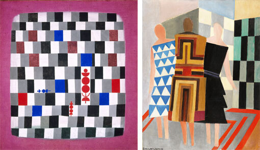 Paul Klee: Uberschach, 1937 y a la derecha Sonia Delaunay: Les robes simultanees, 1925