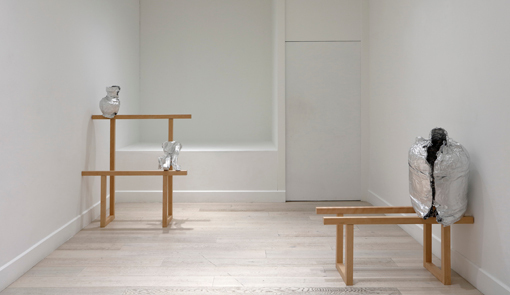 No es fácil tampoco ver a Beatriz Lecuona (Santander, 1978) y Óscar Hernández (Garachico, 1978) en la península. Con un trabajo en el que cruzan distintos medios y juegan con sus límites, son de los artistas canarios más sólidos de su generación. Hace unos meses veíamos su obra Blow (2011-18) en OTR, cuatro bolsas de plástico llenas de pintura que colgaban de la pared, y en 2012 participaban en la Bienal de La Habana con Common Life, una instalación de varias ollas con pintura en ebullición. En su primera exposición en la galería Lucía Mendoza hay un guiño a sus trabajos anteriores pero sobre todo tres instalaciones nuevas pensadas para este espacio. Me quedo con Cuestiones vivas #4 en la que reproducen con papel de aluminio objetos cotidianos de su isla como la base de una columna, un ánfora y un bidón de mercancías que disponen sobre bancos de madera (los de las comunidades evangelistas de su ciudad). Vuelven en sus piezas constantemente sobre las ideas de identidad, historia, tiempo y naturaleza.