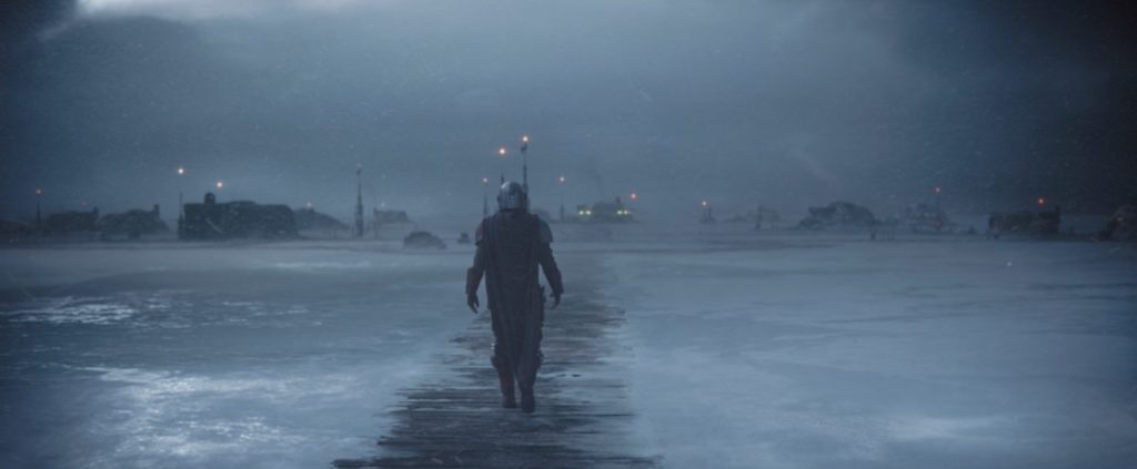 Los tropos visuales. Del uso de las cortinillas para las transiciones a la batalla de naves espaciales con que arranca ‘The Gunslinger’ (1.05), de la lucha contra el Mudhorn en el episodio segundo (‘The Child’) que tanto recuerda a la pelea a la de Luke Skywalker (Mark Hamill) contra el Rancor a la aparición de los Jawa o los disparos lumínicos de los blásters, desde los elementos más accesorios y prosaicos hasta las construcciones más elaboradas remiten inequívocamente a las tres primeras películas que acuñaron la mitología de Star Wars (no me extiendo buscando ejemplos que para eso ya están los youtubers rastreadores de easter eggs).