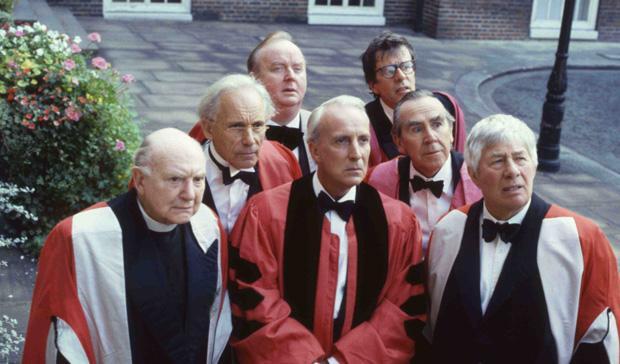 Dejando a un lado las cargas de profundidad que Zafarrancho en Cambridge lanza a discreción, el goce que proporciona pasa, también, por las impagables actuaciones de David Jason e Ian Richardson (sí, el villano de la House of Cards original: o sea, de la buena), por las frases del capellán sordo (Lockwood West), que son para tatuárselas en los párpados (“Hace tiempo que no tenemos un suicidio decente en el colegio”), por esos gags recurrentes siempre colocados en el momento justo -el profesor Messmer (Tim Preece) y su bicicleta plegable- o por planos como el contrapicado que nos muestra a Skullion, apurando su pinta en un pub, con un mapa de la región detrás, estandarte de la cosmovisión que colegios universitarios como el Porterhouse Blue perpetúan. He aquí una serie de la que Jonathan Swift estaría orgulloso.