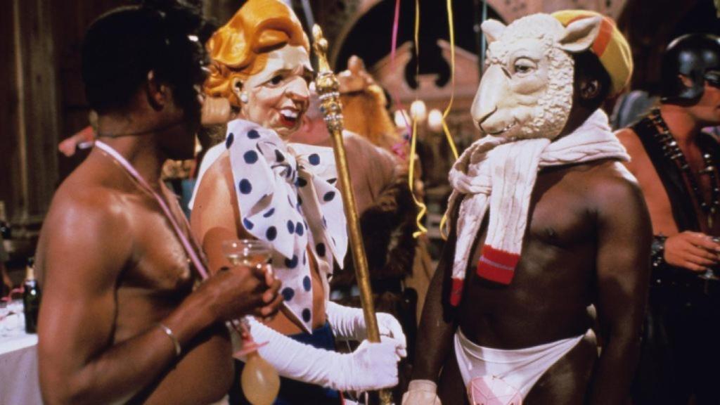 La teleficción de Channel 4 que Filmin incorporó a su catálogo en diciembre de 2020 extrae petróleo cómico de la oposición entre el director reformista y su arcaico consejo recto al que Knights retrata en el tercer episodio como una recua de cucarachas: se trata de un plano general tomado desde una posición elevada en el que se les observa caminar por el patio, todos ellos embutidos en sus togas negras y portando paraguas de idéntico color. Ese enfrentamiento entre tradición y modernidad deriva en dos situaciones que me resisto a pasar por alto. Ambas forman parte de las estrategias elaboradas por los miembros del consejo para defenestrar a Evans. La primera consiste en solicitar a un antiguo alumno, ahora popular presentador de un espacio de reportajes y entrevistas en televisión, que dedique un programa a Porterhouse Blue para mostrar cómo el nuevo responsable quiere poco menos que reducir el colegio a cenizas: aquello termina con Skullion en el plató revelando todo lo que nadie quiere oír, y es que 45 años de servicio dan para un listado en el que se incluyen sobornos, chanchullos o desviaciones sexuales que incumben a gente poco corriente: “Parece que gran parte de la clase dirigente británica tuvo una educación singular”, señala uno de los personajes. Estos comportamientos repudiados en público, pero practicados en privado por esos adalides de los valores tradicionales, todos antiguos estudiantes de colegios como el Porterhouse Blue, se observan en la fiesta de disfraces que ofrece Sir Cathcart D’Eath (Charles Gray), ex alumno veterano y millonario al que Skullion, primero, y el Deán (Paul Rogers) y el tutor senior (John Woodnutt), después, recurren para que les ayude a acabar con el director Evans. En la juerga, a la que han acudido tipos como el gobernador del banco de Inglaterra y un miembro del consejo de ministros, veremos uniformes nazis, hombres negros semidesnudos ocultos bajo cabezas de animales, mujeres sin tiempo para ir de compras y hasta a un señor con micropene (sic). Una jarana en la que se retrata la hipocresía de esas élites (y de sus valedores) que dan rienda suelta a sus pasiones mientras exigen rectitud al resto. Que uno de los dos miembros del consejo porte un tridente demoniaco que contrasta con su habitual apariencia sacerdotal constituye un oxímoron de una expresividad difícilmente superable.