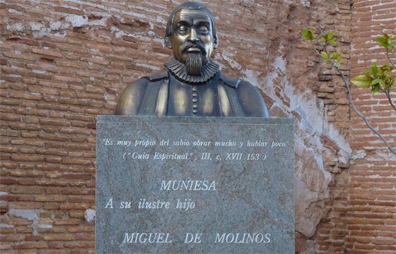 Miguel de Molinos nació en Muniesa, Teruel, el 30 de junio de 1628. Educado por los jesuitas, se doctoró en teología en el Colegio de San Pablo y obtuvo licencia como confesor de monjas, logrando una pequeña renta o beneficio de la iglesia de San Andrés de Valencia. Sabemos poco de ese período, pero todo indica que lo dedicó a leer a los grandes místicos: Santa Teresa de Jesús, San Juan de la Cruz, Jan von Ruysbroek, Johannes Tauler, San Buenaventura, Dionisio Areopagita. Inicialmente, se trasladó a Roma como delegado de la Diputación del Reino de Valencia con la misión de postular la canonización de Francisco Jerónimo Simón, que no prosperó. Jamás regresó. Se quedó en la Ciudad Santa y no tardó en adquirir fama como predicador y director espiritual, granjeándose el aprecio de figuras tan notables como Giovanni Paolo Oliva, general de los jesuitas, la reina Cristina de Suecia, con la que mantuvo un fructífero intercambio epistolar, y el papa Inocencio XI, que le agasajó con su amistad. Molinos consiguió atraer a un grupo de discípulos que se identificaban con su espiritualidad. Solían reunirse en la Basílica de San Lorenzo in Lucina. En 1675 publicó su breve e intensa Guía espiritual, “que desembaraza al alma y la conduce por el interior camino para alcanzar la perfecta contemplación y el rico tesoro de la interior paz”. La obra obtuvo la aprobación de sus superiores y de los calificadores de la Inquisición romana. Cosechó un éxito inmediato. En un período de diez años, se reimprimió tres veces en España (Madrid, 1676; Zaragoza, 1677; Sevilla, 1685). En Italia, corrió un destino similar y enseguida aparecieron las traducciones al latín, el francés, el inglés, el holandés y el alemán. Arzobispos y cardenales ensalzaron la Guía, recomendando su lectura a presbíteros, frailes y monjas. Se dijo que Inocencio XI pensó seriamente en concederle el capelo cardenalicio. Sólo los jesuitas mostraron reservas, pues objetaron desde un principio que la meditación y la penitencia no debían ser postergadas por la contemplación o unión mística, un don que Dios reservaba a unas pocas almas y que, en ningún caso, podía alcanzarse mediante un procedimiento alumbrado por el ingenio humano.