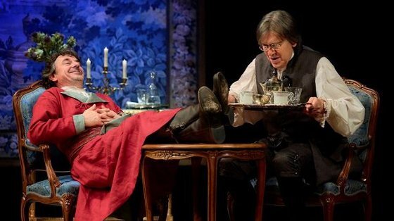 Pudimos ver a comienzos de este año la representación de esta función en el Teatro María Guerrero (Centro Dramático Nacional). Ahora mismo, y dado su éxito, se está representando de nuevo en el Teatro Cofidis Alcázar de Madrid. Dramaturgia, dirección y espacio escénico corren a cargo de Josep Maria Flotats, que interpreta a Voltaire y se confronta con Pere Ponce en el papel de Rousseau.