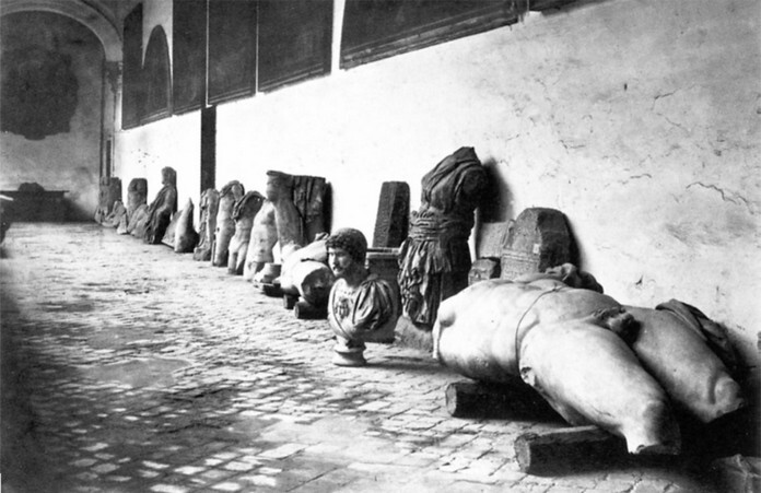 Depósito de piezas arqueológicas en el claustro mayor del exconvento de la Merced, sede del Museo de Pinturas de Sevilla