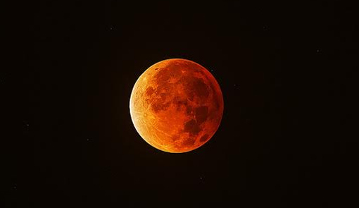Luna "roja" en el máximo de la totalidad del eclipse del 15 de abril 2014 (primero de la tétrada). La observación se realizó desde Sacsayhuaman, Cusco, Perú en el transcurso de la expedición Shelios 2014