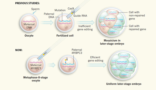 Eso es lo que ha realizado ahora el equipo internacional liderado por el investigador Shoukhrat Mitalipov, del Centro de Células Embrionarias y Terapia Génica de la Oregon Health & Science University (OHSU, en EEUU), evaluando la seguridad y la eficiencia de la corrección efectuada en el gen MYBPC3."Cada generación llevaría esta reparación porque hemos eliminado del linaje familiar la variante del gen que causa la enfermedad", destaca Mitalipov, quien subraya: "Usando esta técnica es posible reducir la carga de esa enfermedad hereditaria en la familia y eventualmente en la población humana", subraya.