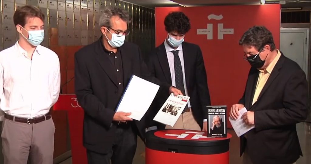 En el acto han participado Luis García Montero, director del Instituto Cervantes; Mariano Barroso, presidente de la Academia de Cine; y los nietos del cineasta, Fidel y Jorge. “Ver el nombre de Berlanga en una de estas cajas al lado del de Muñoz Molina, Bernardo Atxaga o Sanchez Ferlosio nos hace sentirnos a la gente del cine muy bien tratados”, comenta Barroso. “Testimonia la importancia de lo simbólico en el cine y en la cultura y la justicia de reconocer a grandes cineastas como Berlanga. La mejor manera de explicar nuestro país en las últimas décadas es a través de su obra”.