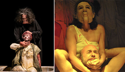 La versión de Marat/Sade de Ricardo Iniesta y, a la derecha, la misma escena montada por Gabriel Molina González