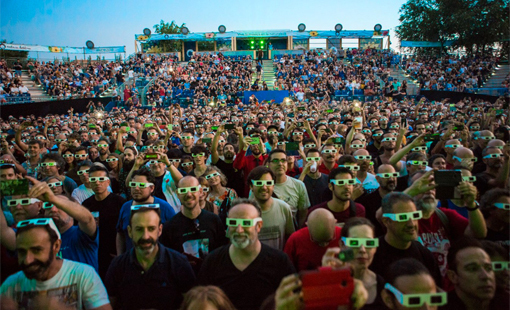 El público con gafas de 3D durante el concierto de Kraftwerk. Foto: Noches del Botánico