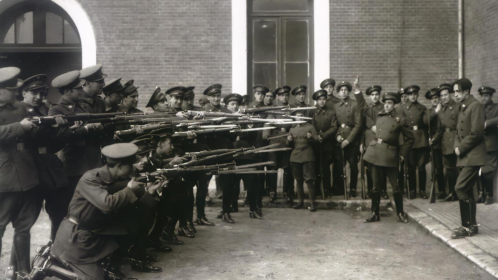 Simulacro de fusilamiento en la Academia de Caballería (1936). Foto: Cacho