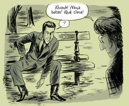 Berberian y su curiosidad por los zapatos de sus ídolos. En esta viñeta, el autor se sorprende cuando descubre qué botas calza Leonard Cohen.