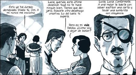 Lo cierto es que el aspecto híbrido del cómic, la unión de lengua y dibujo, enriquece enormemente la biografía al plasmarla en este formato. "Mediante las ilustraciones se pueden expresar cosas de forma más evidente, más expresiva que con palabras. Con las imágenes se transmite un contenido emocional, no sólo racional", afirma Terrones. En el caso de La niña de sus ojos, los dibujos logran una dimensión emocional que completa el guión escrito por Mary M. Talbot, objetivo y poco sentimental. La historia de Lucia Joyce se alterna con la autobiografía de la propia Talbot y su conflictiva relación con su padre, estudioso de Joyce. La autora quería evitar el melodrama y, en el caso de su relato, la autocompasión, consciente de que "los elementos visuales se encargarían del golpe emocional", cuenta a El Cultural.
