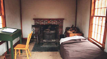 El interior de la cabaña de Thoreau junto al lago Walden.