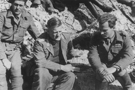 Un descanso en las laderas del monte Ida. El general Kreipe en el centro, Paddy, a su izquierda.