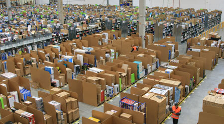 Nave de almacenamiento en el centro logístico de Amazon.es