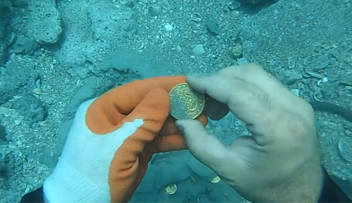 Momento en que Eric Schmitt encuentra las monedas en las aguas de Florida